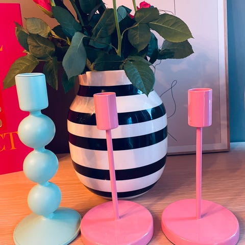 Smijern lysekrone til å henge i taket. Plass til 4 kronelys/ vanlige lys. Mulig å forlenge med tre ekstra forlengere( se bilde for lengde) Denne har aldri vært brukt.