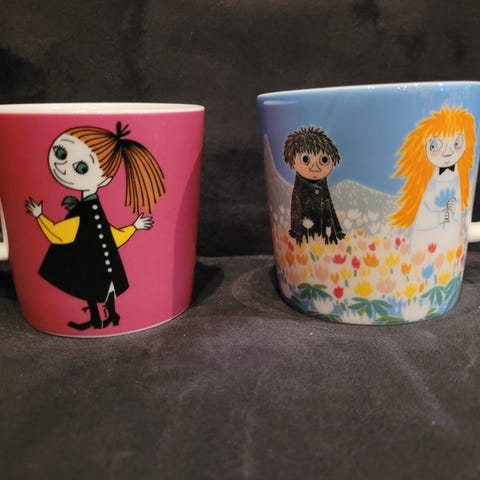 Selger helt nye Arabia Mummikopper i perfekt stand. Har 2 stk av hver kopp, og de kan selges enkeltvis eller samlet.