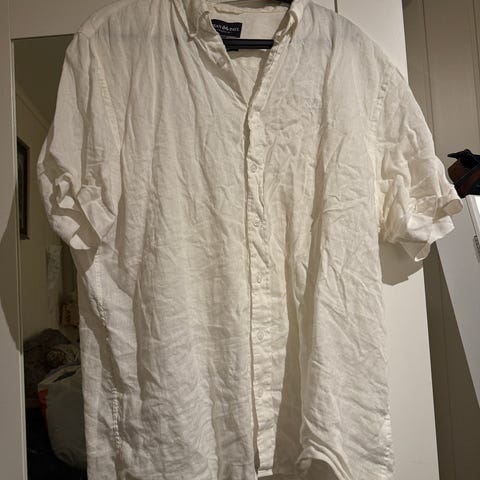 Jean Paul Lin skjorte i størrelse XL. Skjorten har kort erme og er laget av linmateriale. Fargen er grønn. Passer for menn.