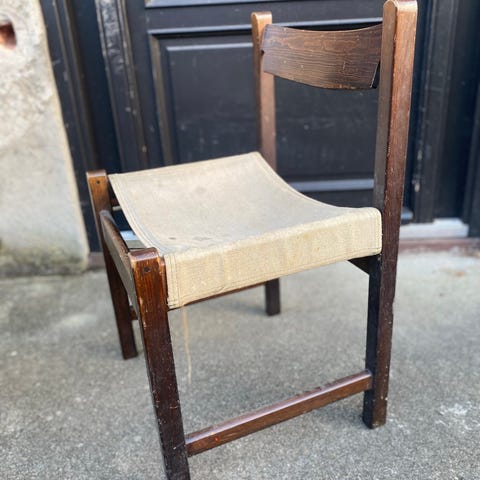 - Alle stolene er litt slitte i ullstoffet, og kan med fordel trekkes om. Det er en forholdsvis enkel sak, da stolplaten lett kan skrus av.