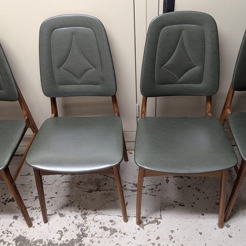 - To av stolene har stått like ved kjøkkenhåndkleet og har fått litt vannsprut på seg, bør nok omlakkeres.