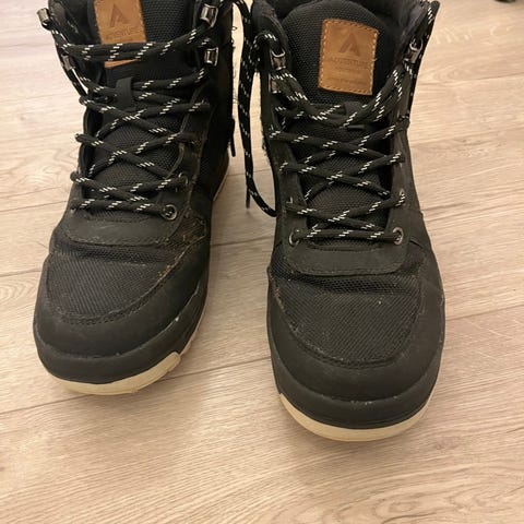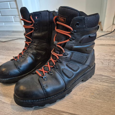Forma sko i størrelse 43, laget i svart skinn. Designet for herre og egnet for ulike aktiviteter innen moped/mc. Skoene har en solid gummisåle med godt grep.