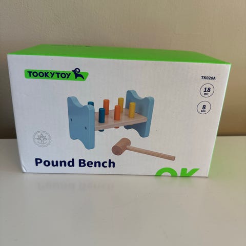 Tooky Toy stable- og sorteringsleke i tre med flere farger og former. Inneholder tre stabletårn med ulike geometriske former og størrelser, designet for barn for å utvikle finmotorikk og formgjenkjenning.