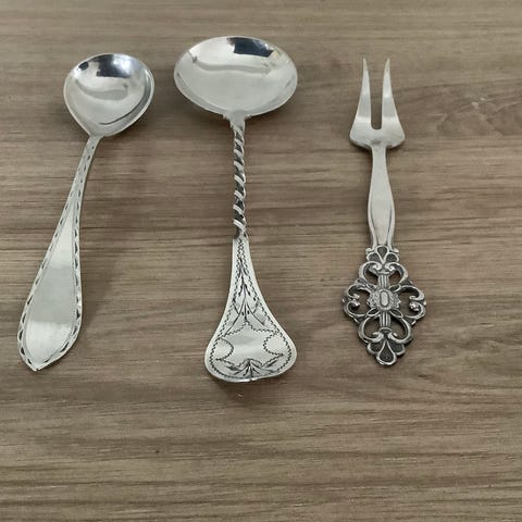 Rydder opp i noe sølv / sølvplett bestikk som ikke blir brukt av oss.