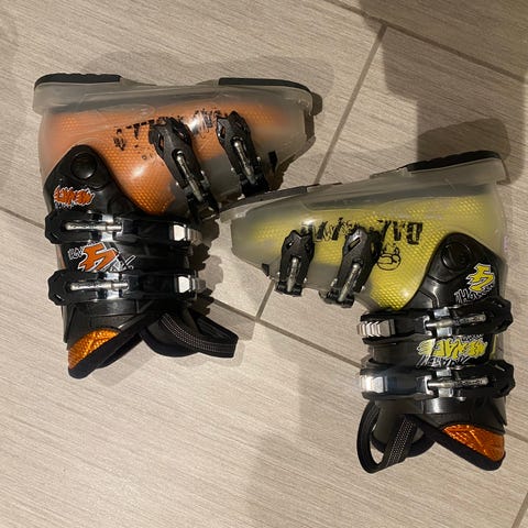 Dalbello barn alpinstøvler med størrelse 20,5 cm. Fargene er grønn og hvit, med polstret innside for komfort. Støvlene har spenner for justering og god støtte under skikjøring.