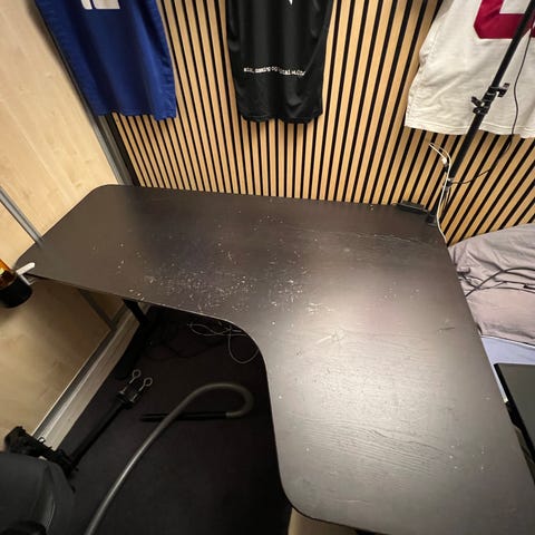 Skrivebord, lite brukt, som nytt. Ingen bruksmerker. Passer ypperlig som gamingbord med god dybde og evt plass til to skjermer.
