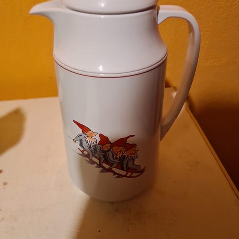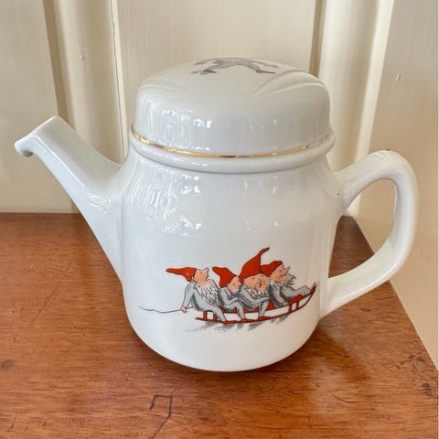 Lite brukt kanne med motiv fra Porsgrunn Porselen sitt nisseservice. Bare brukt til varmt vann.