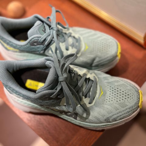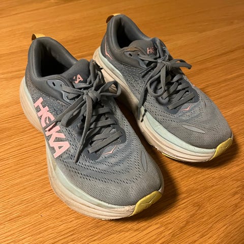 Hoka One One bondi løpesko i størrelse 38, blå farge. Designet for løping med demping og støtte tilpasset løpebevegelser.