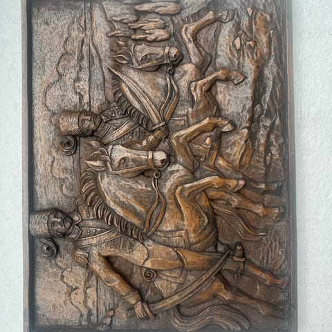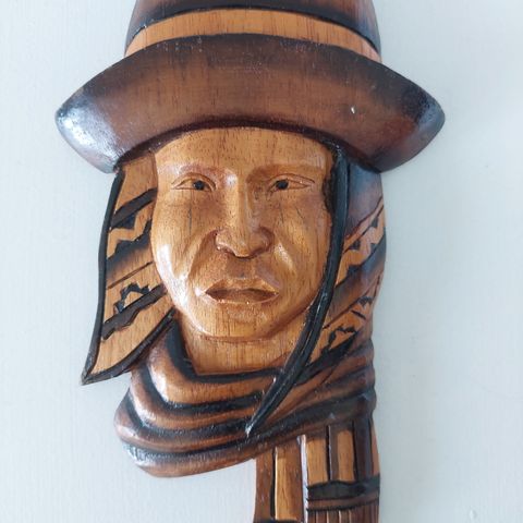 Utskjært trestykke som er 85 cm L og 27 cm på det høyeste punkt