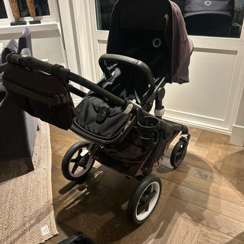 Blå Bugaboo fox vogn til salgs. Skinnhåndtaket er noe slitt og bør byttes ut. I tillegg er solkalesjen noe solbleket og kan med fordel byttes i en ny. Vogna er ellers pent brukt og har vært oppbevart innendørs til enhver tid.Trekket kan tas av og vaske i maskin.