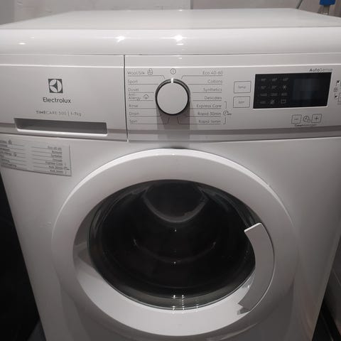Bosch Frontmatet vaskemaskin. Hvitt design med frontmatet dør. Egnet for vanlig husholdningsbruk. Fungerer bra