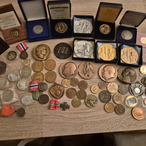 Ukjent Sett med to medaljer i treskrin