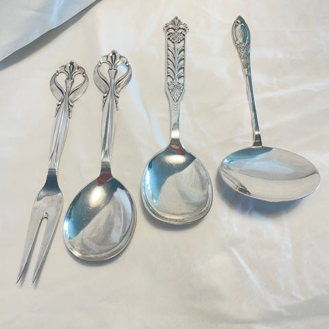 Sukker/Fløte stemplet 60 Gram. Fat stemplet 60 Gram. Haakon teskje stemplet 40 Gram. Se også beskrivelse ved bildene. Kan hentes I Drammen eller sendes I posten