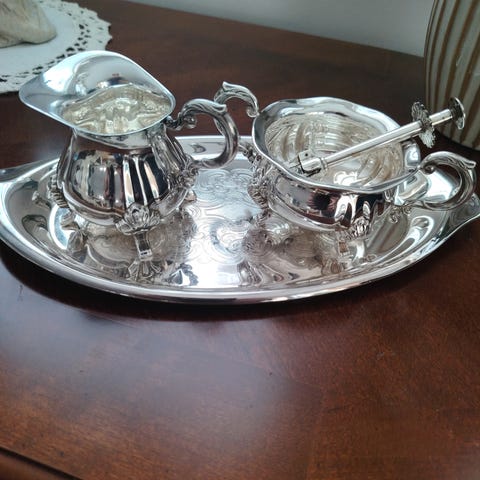 Pent brukt Sukker/Fløtesett med Haakon teskje kr 300.