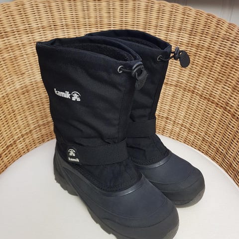 Minimen barnestøvler for gutt i størrelse 39. Støvlene har blå farge og er designet for å gi beskyttelse og komfort i kaldt vær. Passer til bruk i vinterforhold.