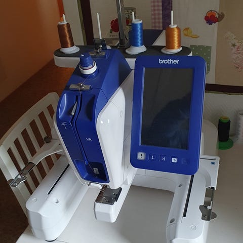 Nesten ubrukt broderimaskin som har blitt stående på loftet. Kjøpt i november 2013 for 12.995,-. Kopi av kvittering kan følge med (men butikken den er kjøpt hos er lagt ned).