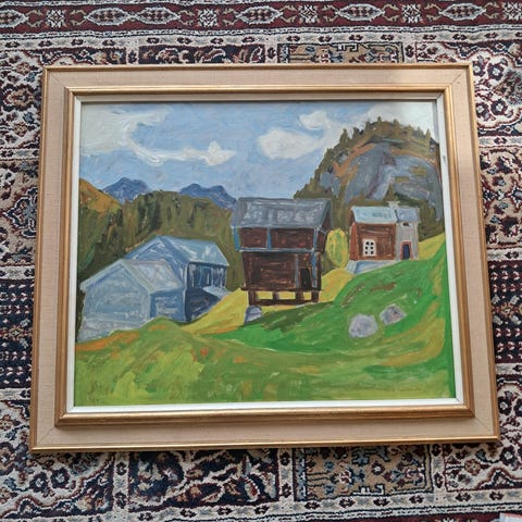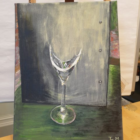 "Time is money" jeg malte dett bilde i 2023 og har hatt det på hyllen siden. Det er et 30x30cm lerret.