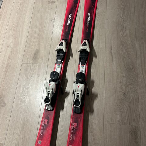 Skiene er brukt av ett barn. Lengde 130 cm. Normale bruksmerker på sålen, se bilder