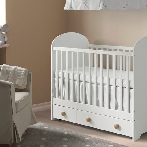 Grå farge, 3 skuffer. Madrasen følger med om ønskelig.