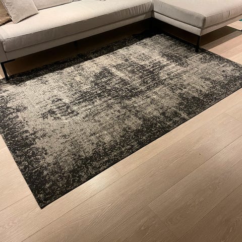 Selger 1 år gammelt teppe da dette ble alt for lite til vår sofa gruppe, målene finner dere på et av bildene. Lone teppe kjøpt på Møbelringen, ny pris 3699kr