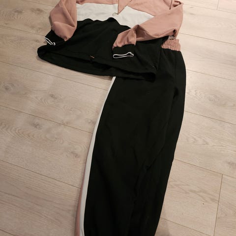 Bukse i M, overdel i XL pga svært kort modell. Fremstår som str M.
