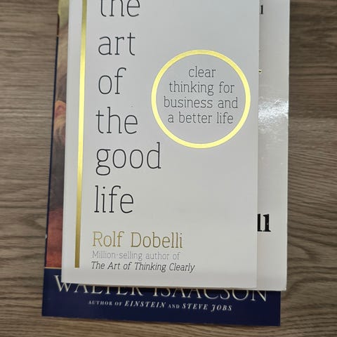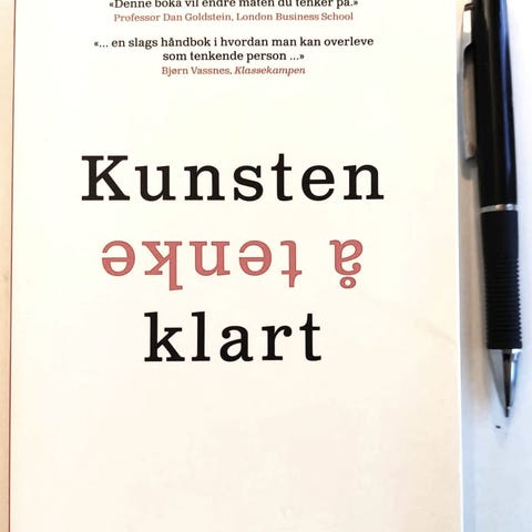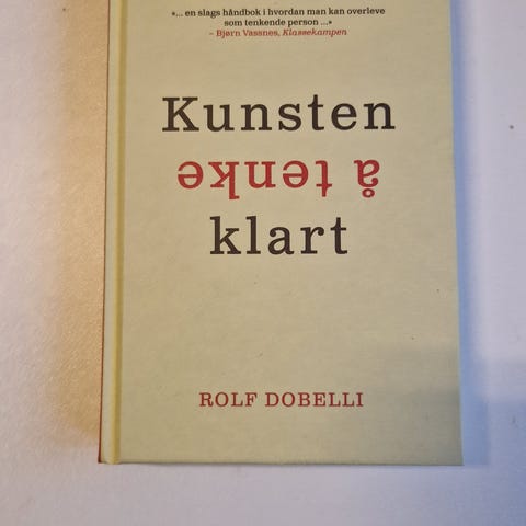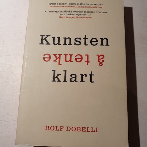 Rolf Dobelli Kunsten å tenke klart bok. Inneholder innhold som forfatterens perspektiver og refleksjoner, med kapitteltitler som gir innsikt i temaer som kritisk tenkning og beslutningsprosesser. 2015