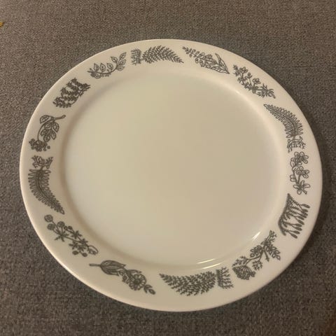 Dersom ønskelig medfølger to hvite tallerkener, et sausenebb og en oval skål. Se siste bilde.