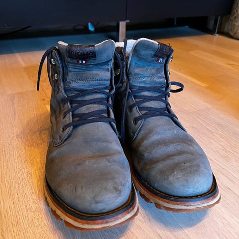 Nye sko som ikke er blitt brukt og som selges grunnet vokst fra dem.