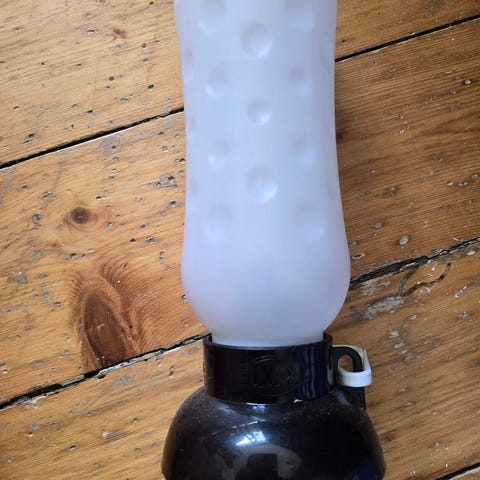 Liten hundedrikkeflaske, brukt en gang, da den vi bruker til vanlig var glemt igjen hjemme.