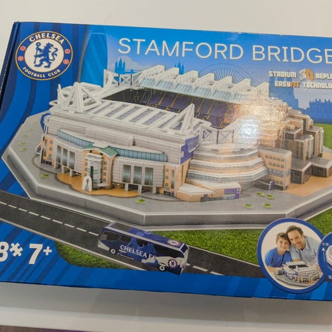 Chelsea Football Collectors Edition puslespill med 1000 biter. Puslespillet viser et flyfoto av Chelsea stadion (Stamford Bridge) og nærområdet. Limited Edition utgave. Ny pris hos Hobbyspesialisten er 490kr. Helt uåpnet.