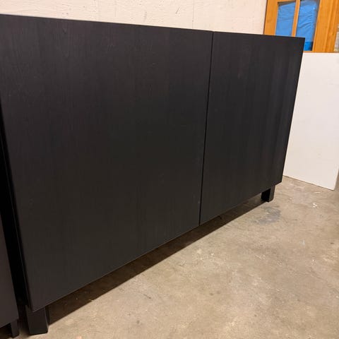 Selger Liatorp skjenk fra IKEA. Noen bruksskader som lett kan skjules med pensel og maling. Ene døren er litt løs, men kan fint limes.