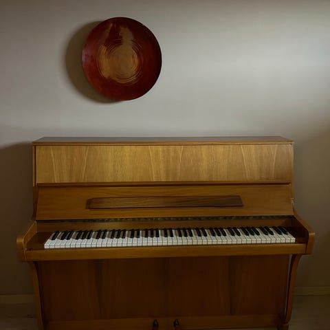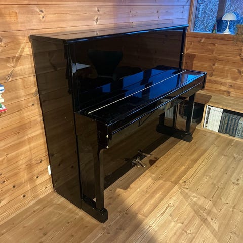 Må hentes. Pianoet er tungt! Bør være 4 stk eller proffesjonelle som henter. Må bæres ut gjennom hagen. Plass til henger utenfor porten.