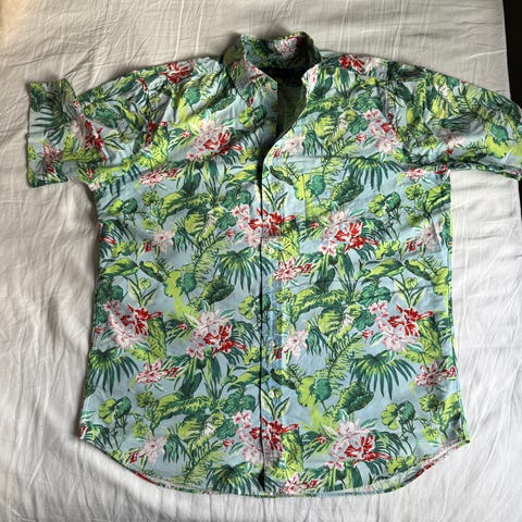 Scotch & Soda poloskjorte i oransje farge, størrelse XL. Kortermet design med krage og knappelukking foran.