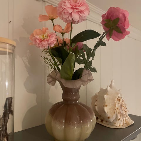 Ubrukt, matt vase i dolomitt. Kun stått til pynt inne i skap. Utsolgt fra butikk. Nypris: 279,-