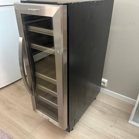 Kan få inn 28 flasker da man kan legge dobbelt i øverste hylle.