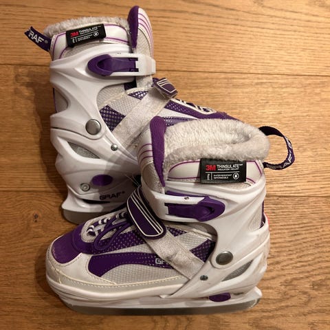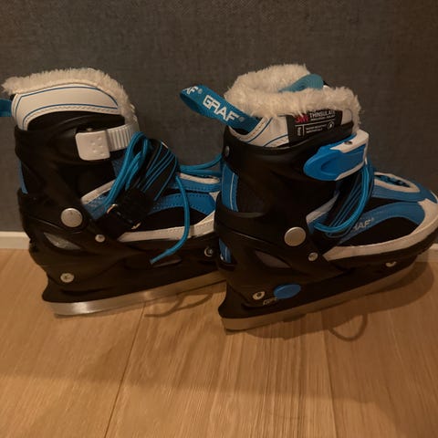 Selger et pent brukt justerbare skøyter til barn i str 34-37. Nypris er 1000,- Kun prøvd et par ganger.