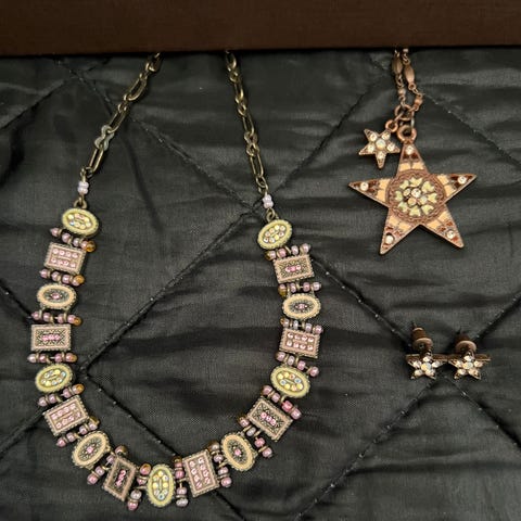Pilgrim kjede og øredobber, turkis farge, og fjær