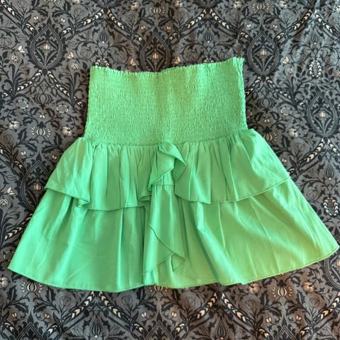 Supersøtt skjørt fra H&M! Den er i str. 170 barnestørrelse, som i dette tilfellet tilsvarer en XXS-L da materiale til skjørtet er veldig tøyelig! Nydelig grønnfarge med hint av tie-dye mønster:) Selges da jeg rydder i skapet, og må bli kvitt en del klær:) Flerfarget design med elastisk midje og lagdelt stoff.