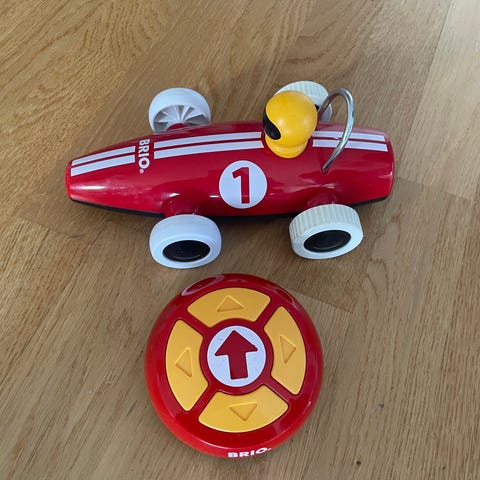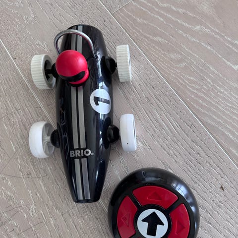 BRIO Bil med fjernkontroll, svart farge med hvite hjul. Pent, lite brukt men noen bruksmerke