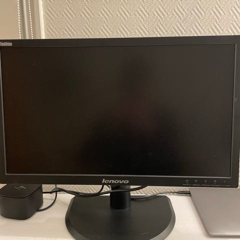 Dell 24" skjerm med 24 tommers skjermstørrelse. Skjermen har en svart ramme og flere kontrollknapper på siden. Leveres med strømkabel og tilkoblingskabel. DisplayPort,DVI og VGA,USB hub.