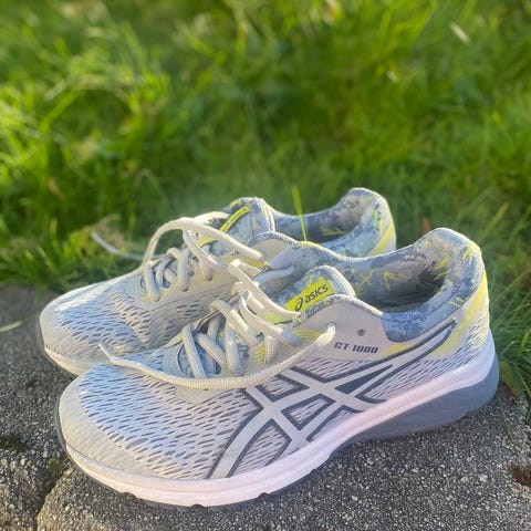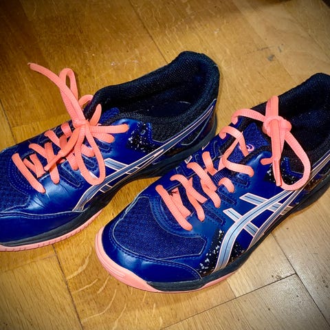 Asics Fitnesssko størrelse 40,5 i blå og gul farge. Egnet for trening og fitnessaktiviteter.