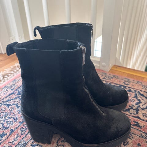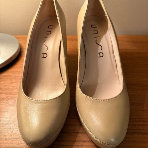 H&M Hæler i størrelse 37 med beige farge. Skoene har åpen tå og ankelstropp med spenne. Materialet er mykt og skoene har en middels høy blokkhæl.