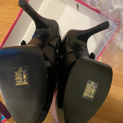 Selger et par Pleaser Flamingo-1020 i svart matt kunstskinn.