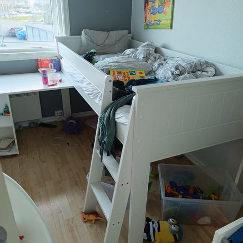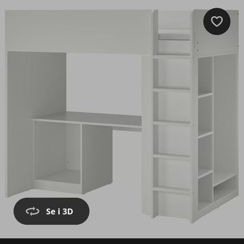 IKEA Loftseng for barn. Sengen er laget i tre og har en naturlig trefarge med hvite detaljer. Passer for barn og gir ekstra plass under sengen som kan brukes til oppbevaring eller lek.