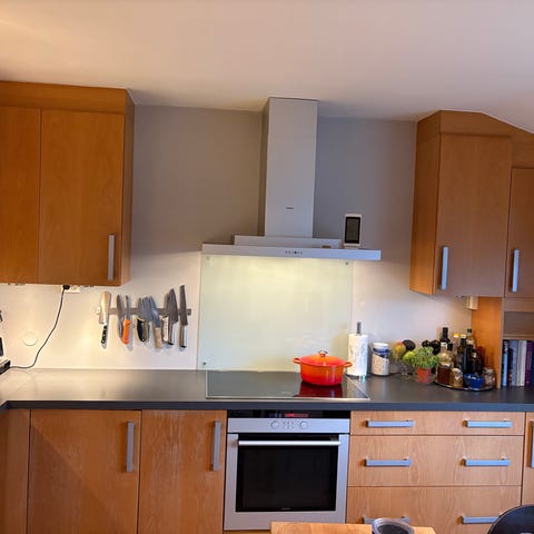 Selger hele kjøkkenet i eik tre. Hvitevarer som er inkludert - komfyr ovn, ventilasjons vifte, oppvaskmaskin (meile). Benkeplate er i stein.