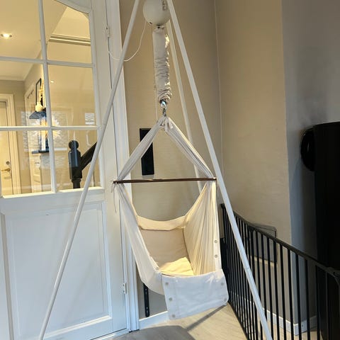 Sengen er halvveis demontert, kan demontere helt dersom det er ønskelig. Man får plass til den nå i en bil hvis man legger setene bak ned:)