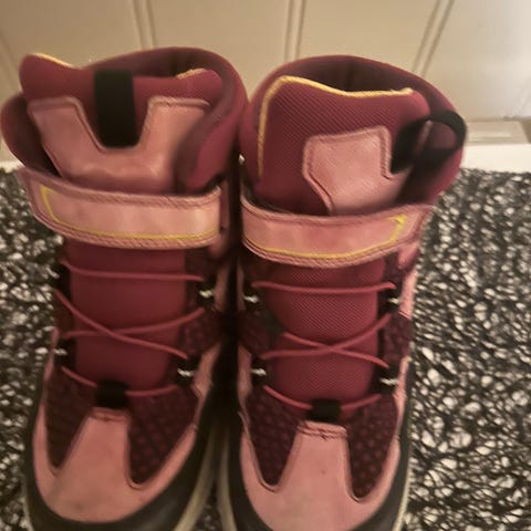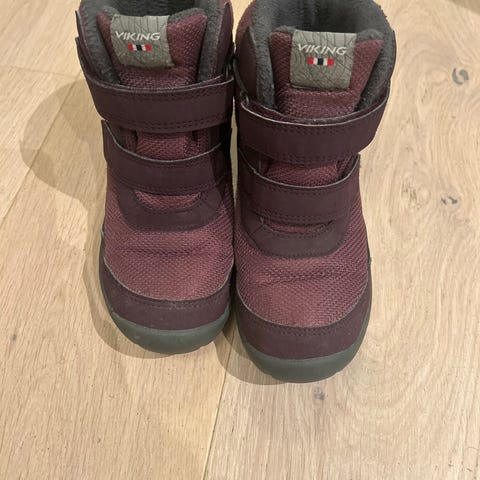 Viking vinterstøvler for jente i størrelse 34. Støvlene har isolerende materiale og en robust såle, egnet for kalde og våte forhold.