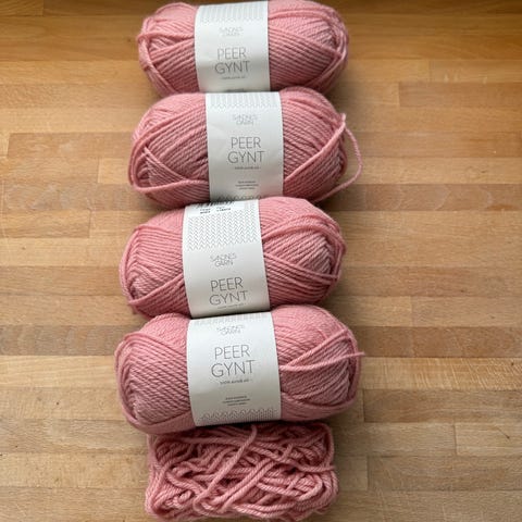 Passer å bruke om hverandre. Det er rester fra et stort pledd jeg strikket og perfekt til det eller restegenser.