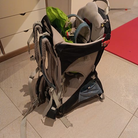 Osprey Poco premium bæremeis med integrert bæresele. Designet for å bære små barn komfortabelt og sikkert. Har justerbare stropper og polstret rygg for støtte. Inkluderer oppbevaringslommer og sikkerhetsbelter for barnet.