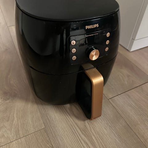 Philips Airfryer med svart design. Kompakt størrelse, enkel i bruk og rengjøring.